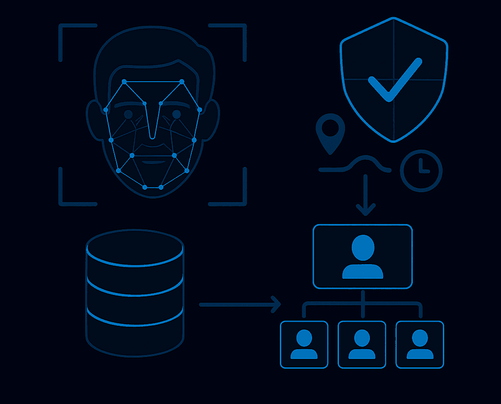 AI verifies each user in real time — checking for spoofing, confirming time and location, and storing data locally for privacy and compliance.